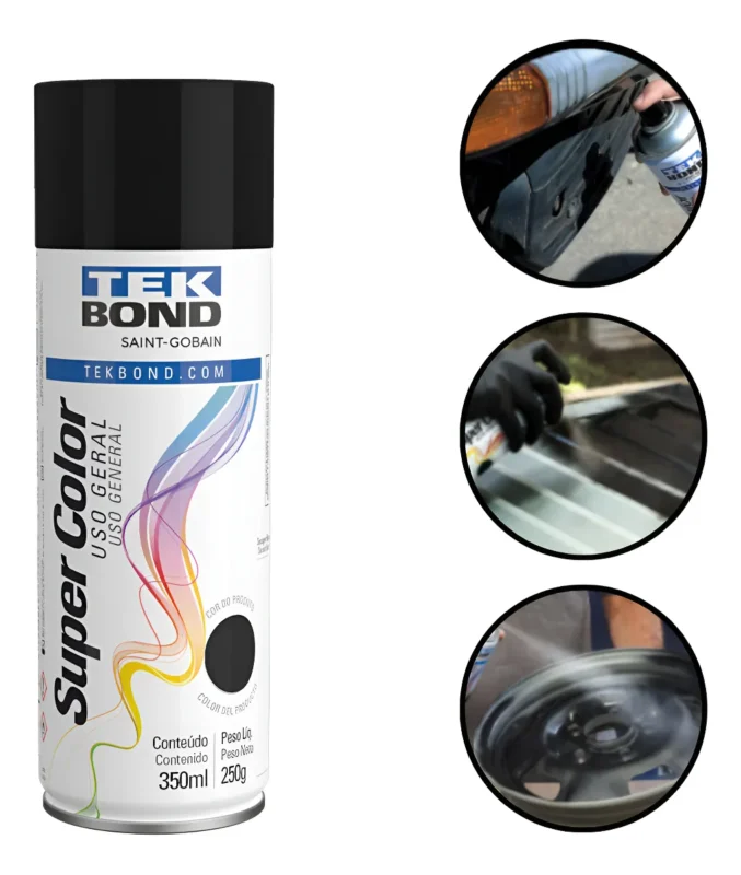 A Super Color Uso Geral da Tekbond é uma tinta acrílica de secagem rápida que proporciona excelentes acabamentos. Possui um incrível poder de cobertura e ótima resistência a condições climáticas extremas, permitindo uso em ambientes internos e externos. Pode ser aplicada em ferro, aço, madeira, cerâmica, gesso, entre outros materiais.
