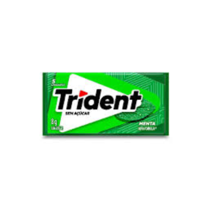 Goma de mascar Trident sabor menta, refrescância intensa e sem açúcar.