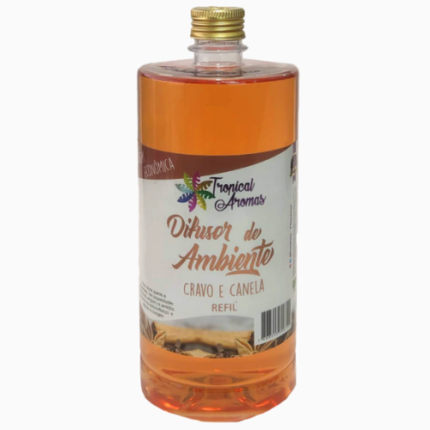 Refil para difusor de ambiente com fragrância de cravo e canela, ideal para reposição e perfumação contínua dos ambientes.