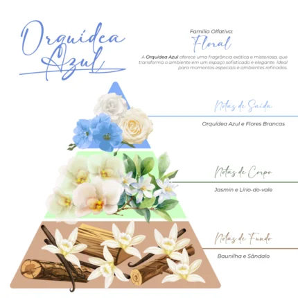 Difusor de ambiente premium com fragrância de orquídea azul, ideal para perfumar e sofisticar ambientes.