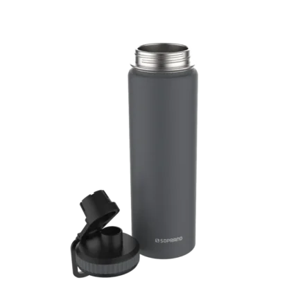 Garrafa térmica Soprano Everest com capacidade de 650 ml, na cor cinza, ideal para manter bebidas quentes ou frias por mais tempo com praticidade no uso diário.