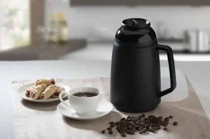 Garrafa térmica Soprano Lotus com capacidade de 500 ml, na cor preta, ideal para conservar bebidas quentes ou frias por mais tempo com praticidade e design compacto.
