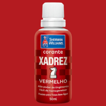 Corante líquido “Xadrez” em bisnaga de 50 ml, cor vermelho intenso, alto rendimento e ideal para tingimento de tintas à base de água.
