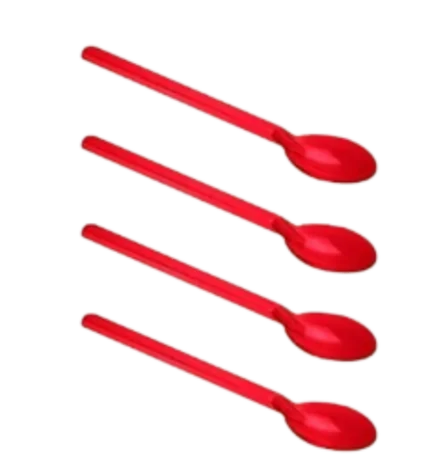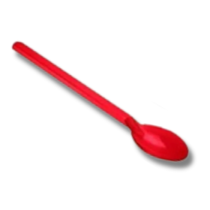 Colher pequena vermelha em plástico resistente, ideal para uso diário em refeições, sobremesas e lanches.