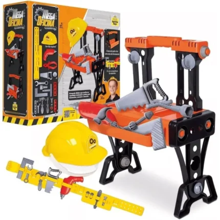 Bancada de ferramentas infantil completa, ideal para estimular a criatividade, coordenação motora e o faz de conta das crianças.