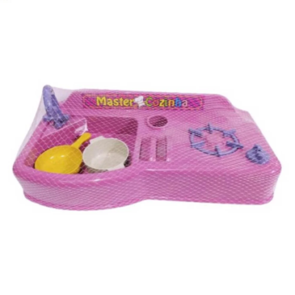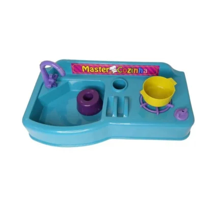Kit Master Cozinha com 3 peças em plástico resistente, ideal para estimular a criatividade e a imaginação das crianças.