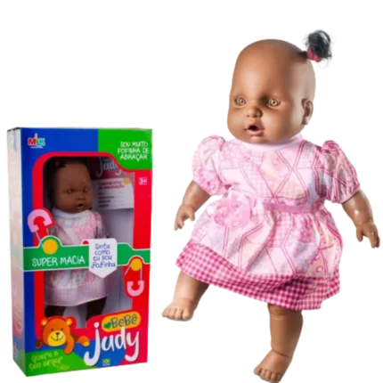 A Boneca Bebê Judy Negra é uma linda boneca com corpo em tecido macio e fofinho, perfeita para crianças a partir de 3 anos. Ela vem acompanhada de uma carteirinha de vacinação, permitindo que as crianças simulem cuidados médicos e desenvolvam empatia e responsabilidade. Seu design encantador e tamanho ideal tornam-na uma companheira perfeita para brincadeiras educativas e carinhosas.