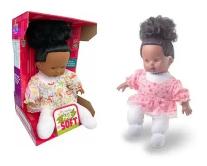 A Boneca Hair Soft Negra é uma encantadora boneca com 28 cm de altura, confeccionada com corpo de tecido macio e enchimento fofinho, proporcionando uma sensação realista ao toque. Ela possui cabelo macio e modelável, permitindo que as crianças criem diversos penteados, estimulando a criatividade e a coordenação motora. Seu design encantador e expressão facial amigável tornam-na uma companheira perfeita para brincadeiras lúdicas. Ideal para crianças a partir de 3 anos, esta boneca auxilia no desenvolvimento da imaginação e habilidades sociais.