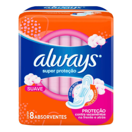 Absorvente Always Básico Suave com abas, pacote com 8 unidades, oferece conforto, absorção confiável e proteção segura para o uso diário.