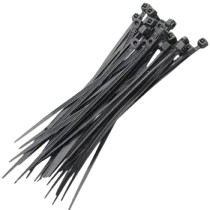 Abraçadeira de nylon preta 2,5x100mm com 100 unidades, ideal para organização e fixação de cabos e fios.