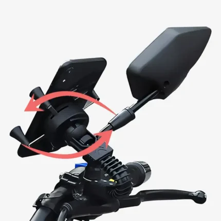 Suporte para celular desenvolvido para motocicletas, oferecendo fixação segura e visualização prática durante o uso.
