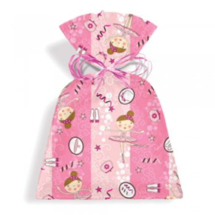Saco para presente com estampa de bailarina, tamanho 45cm x 59cm, indicado para embalar presentes de médio porte com praticidade, resistência e visual delicado. Pacote com 50 unidades.