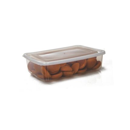Produzida em plástico PP transparente e resistente, com tampa de encaixe seguro, protege alimentos contra poeira, umidade e vazamentos. Compacta, empilhável e versátil, ideal para cozinha, despensa ou armários.