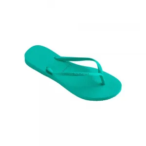 Sandália Havaianas Slim verde, leve e confortável, ideal para o dia a dia.
