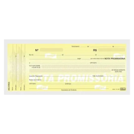 Bloco de nota promissória com 50 folhas, indicado para registro formal de compromissos financeiros.
