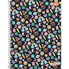 Caderno universitário D+ Feminino 12 matérias com 240 folhas pautadas, capa dura e espiral metálico.