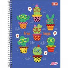 Caderno universitário Lunix 16 matérias com 256 folhas pautadas, capa dura e espiral metálico.