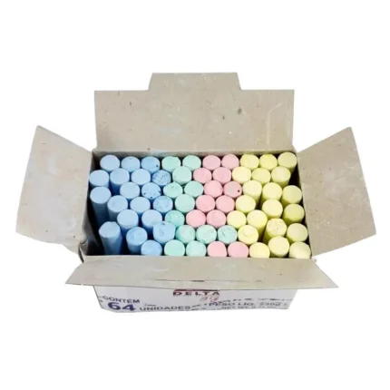 Giz escolar colorido Delta Giz, ideal para escrita e desenho em quadros negros em ambientes escolares e educacionais.