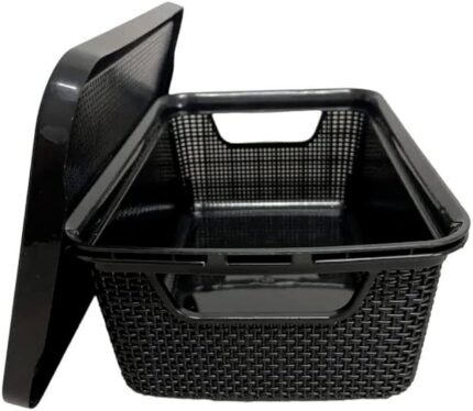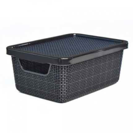 Organizador estilo rattan com tampa de 7 litros, compacto e ideal para organização prática.