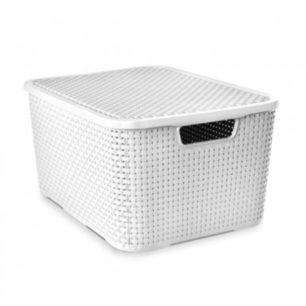 Organizador estilo rattan com tampa de 20 litros, ideal para organização prática e elegante.