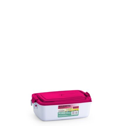 Produzida em plástico PP resistente e livre de BPA, possui travas laterais que garantem fechamento seguro da tampa, evitando vazamentos.