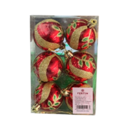 Conjunto com 6 bolas de Natal de 5 cm, ideais para enfeitar árvores e composições natalinas com brilho e leveza.