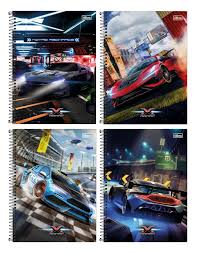 Caderno universitário X-Racing 20 matérias com 320 folhas pautadas, capa dura e espiral metálico.