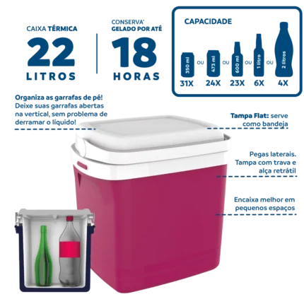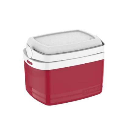 Caixa térmica Soprano 50 litros com rodas, cor vermelha, prática, resistente e ideal para manter bebidas e alimentos gelados.