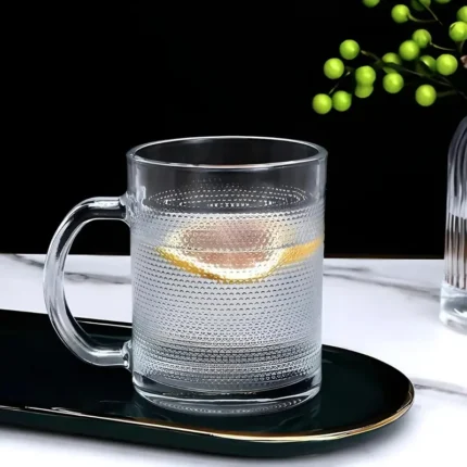 Caneca de vidro com capacidade de 280 ml, indicada para servir bebidas quentes ou frias com praticidade no uso diário.