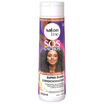 Condicionador SOS Cachos Super Óleos 300ml Salon Line, ideal para nutrição e definição dos cabelos cacheados.