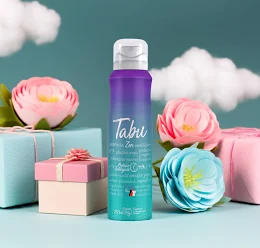 Desodorante aerosol Tabu Linda 150ml com proteção prolongada e fragrância delicada.