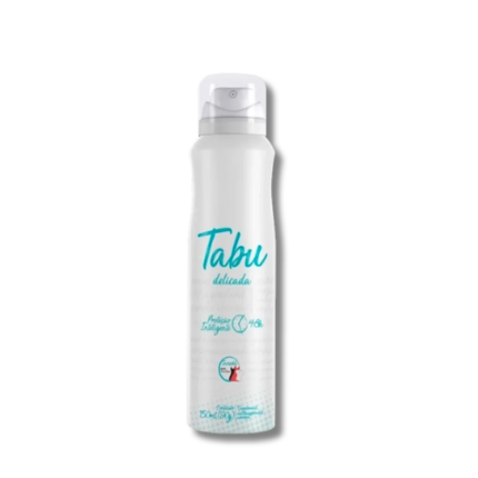 Desodorante aerosol Tabu Delicada 150ml com fragrância suave e proteção prolongada.