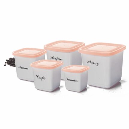 Organize sua cozinha com estilo usando o Conjunto de Mantimentos Quadrado 5 Peças Decorado da Ercaplast. Ideal para armazenar alimentos secos como arroz, feijão, açúcar, farinha etc., ele possui tampas decoradas que agregam charme e funcionalidade. A versão quadrada aproveita melhor os espaços em prateleiras e despensas.