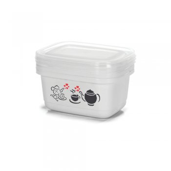 Conjunto com 3 potes quadrados médios da Linha Prime, produzidos em plástico PP resistente e livre de BPA.