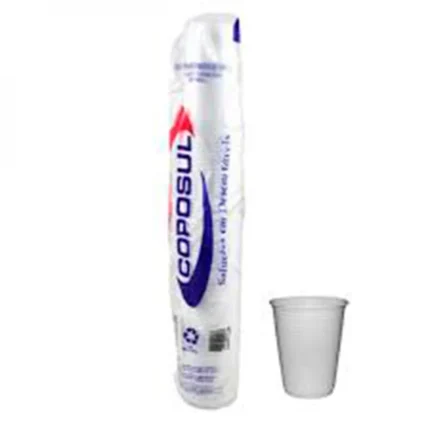 Copo descartável transparente de 180 ml em poliestireno (PS), prático e higiênico, ideal para bebidas frias em eventos e estabelecimentos comerciais.