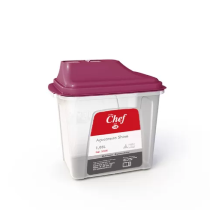Açucareiro com capacidade de 460 ml, produzido em plástico PP transparente e resistente.
