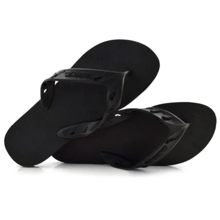 Chinelo masculino Havaianas Track Go na cor preta, tamanho 41/42. Modelo resistente com solado antiderrapante, ideal para uso diário com conforto e segurança.