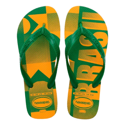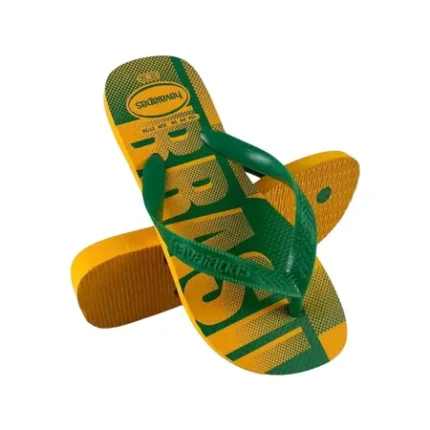 Chinelo Havaianas Brasil amarelo pop, confortável, resistente e com detalhe da bandeira.
