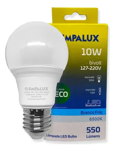 Lâmpada LED E27 de 30W Empalux com luz branca fria 6500K e fluxo luminoso de 1680 lumens, indicada para ambientes que exigem iluminação intensa e eficiente.