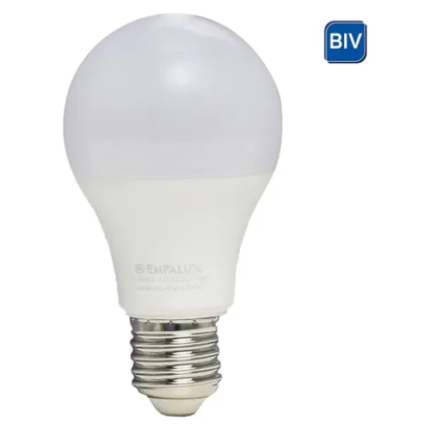 Lâmpada LED Empalux 9W com luz amarela 3000K, soquete E27 e fluxo luminoso de 720 lúmens, ideal para iluminação aconchegante e econômica.