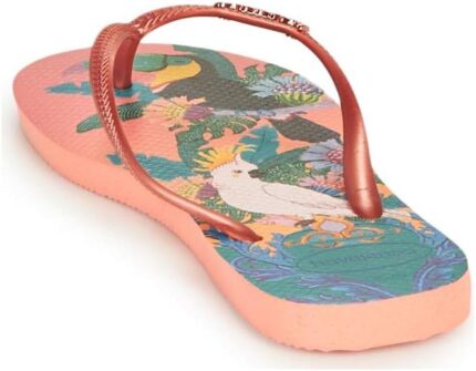 Chinelo Havaianas Slim Tropical Rosa Seda 35/36 com estampa tropical, leve, confortável e ideal para o dia a dia.