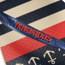 Chinelo Havaianas Slim Nautical feminino, modelo leve e elegante com visual inspirado no estilo náutico, combinando branco, azul-marinho e vermelho. Ideal para o dia a dia, oferecendo conforto, flexibilidade e um toque moderno para qualquer look casual.