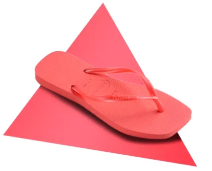 Chinelo feminino Havaianas Slim Square Coral Tropical, com design moderno, tiras finas e solado quadrado que proporciona estilo único e conforto para o dia a dia.
