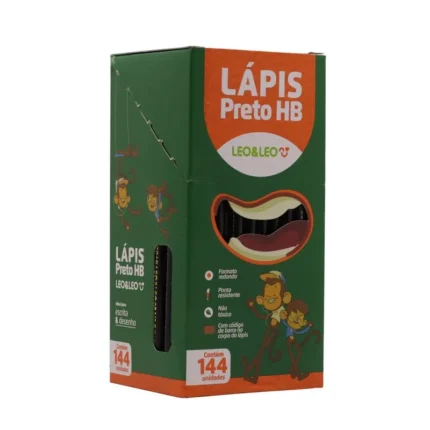 Lápis grafite HB com corpo redondo em resina preta, ideal para escrita suave e uso escolar ou cotidiano.