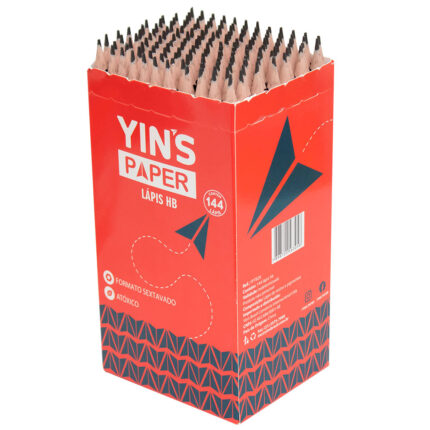 Lápis grafite HB em resina, cor preta, formato sextavado.