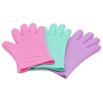 Luva de silicone indicada para proteção térmica no manuseio de utensílios quentes.