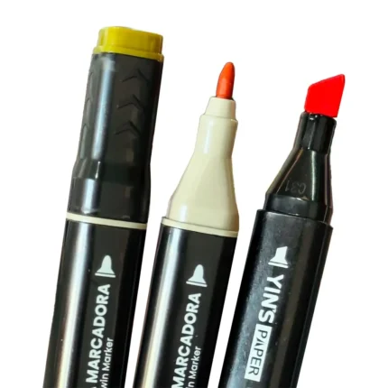 Conjunto de marcadores artísticos Yins Paper com 12 cores vibrantes e dupla ponta (fina e chanfrada), ideal para desenho, lettering, ilustrações e trabalhos criativos em diversas superfícies.