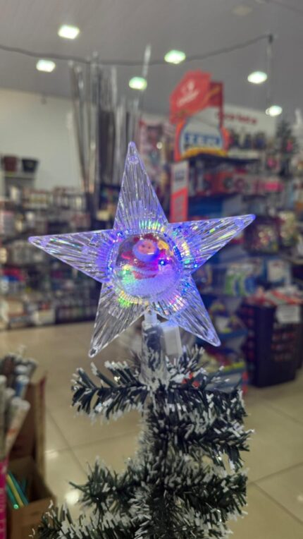 Ponteira de estrela elétrica de 18 cm com luzes de LED, ideal para destacar o topo da árvore de Natal com brilho e elegância.