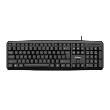 Teclado USB com fio, padrão brasileiro ABNT2, corpo preto, voltado a uso diário em escritório, escola ou casa, com conexão plug‑and‑play.