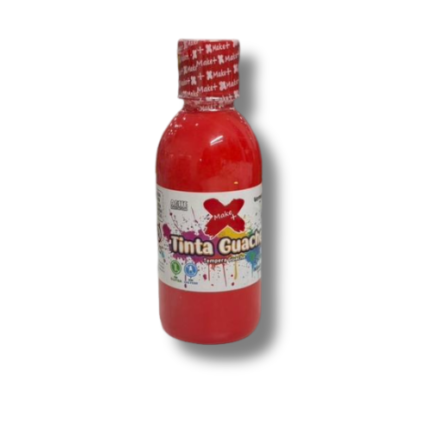 Tinta guache vermelha em frasco de 250 ml, com cobertura opaca e secagem rápida. Ideal para uso escolar, artesanato e pintura artística.
